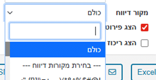 אם אין נתונים בהתאם לשמות מקורות הדיווח שנבחרו – תוצג