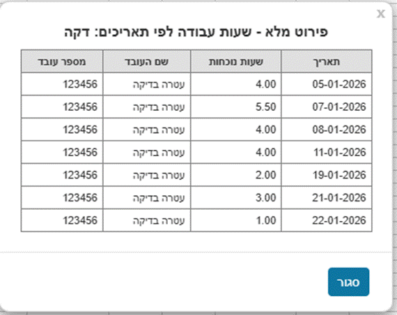 מקורות דיווח ללא שעות עבודה בפועל לא יוצגו בטבלה.