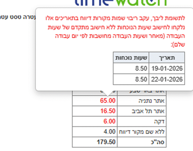 שעות עבודה (כמו הורדת הפסקה וכו' – מאחר ולא ניתן לדעת מאיזה שם מקור דיווח